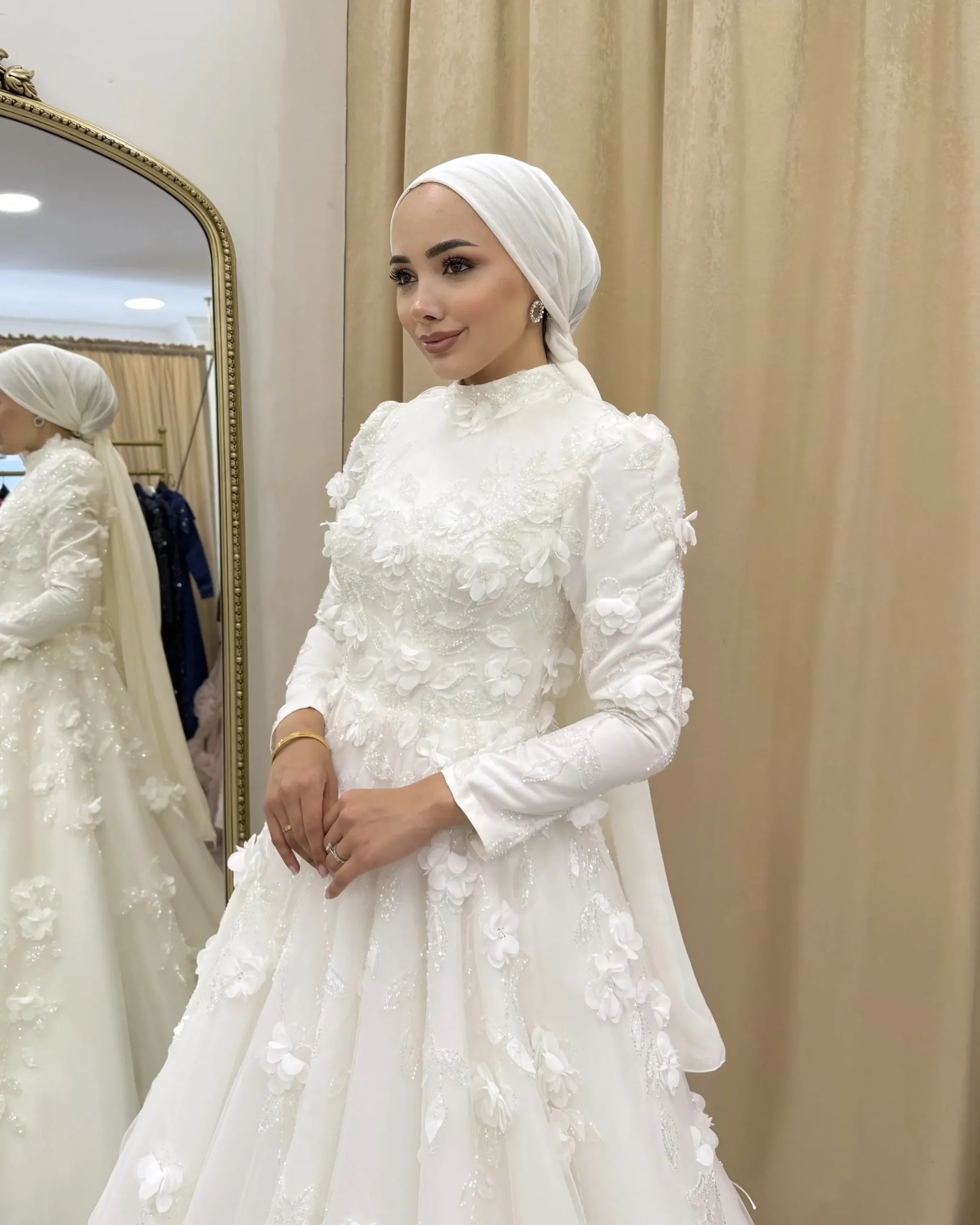 Üç Boyutlu Çiçek İşlemeler: El işçiliğiyle yerleştirilen 3D çiçek motifleri, doğal bir zarafet hissi uyandırır.