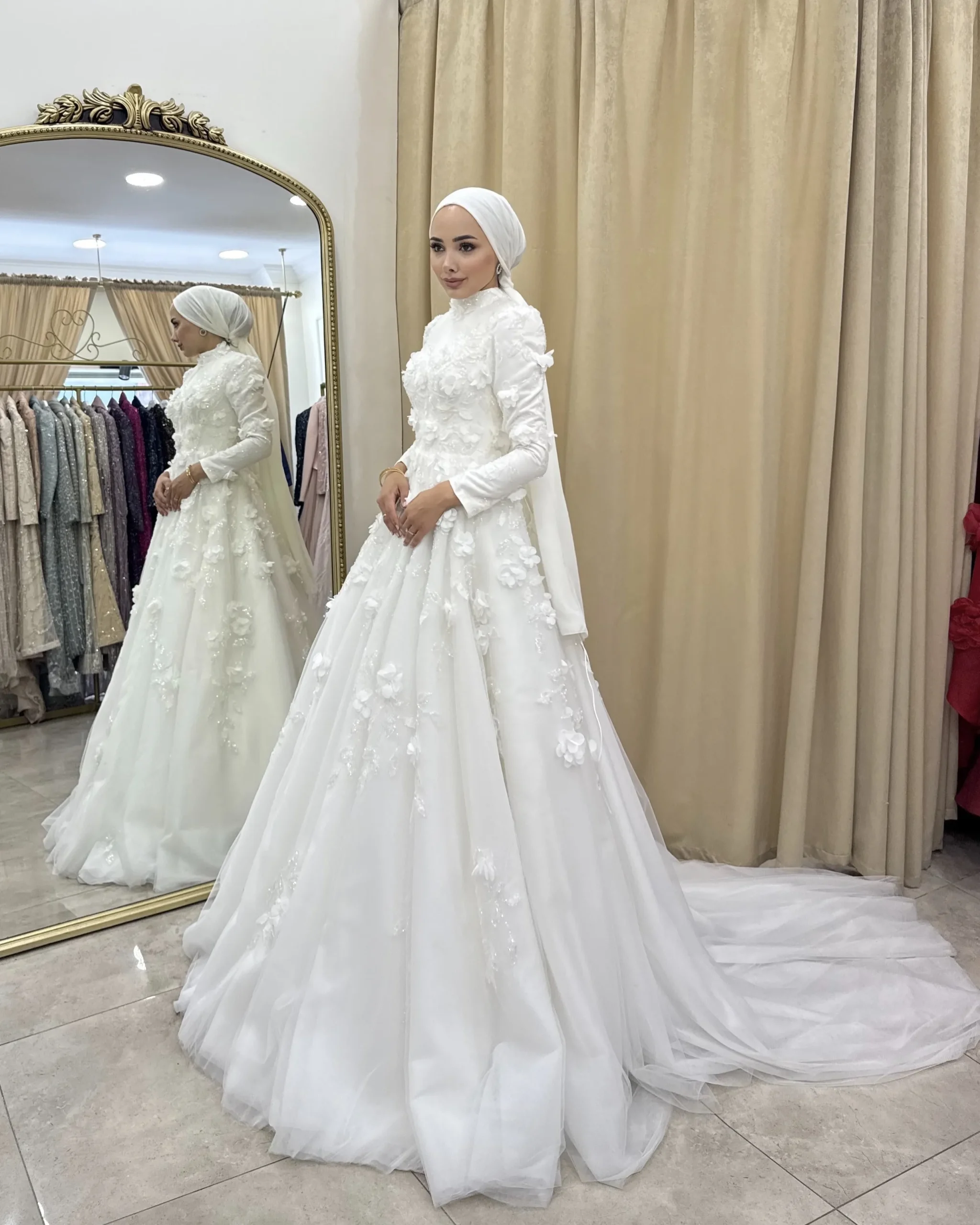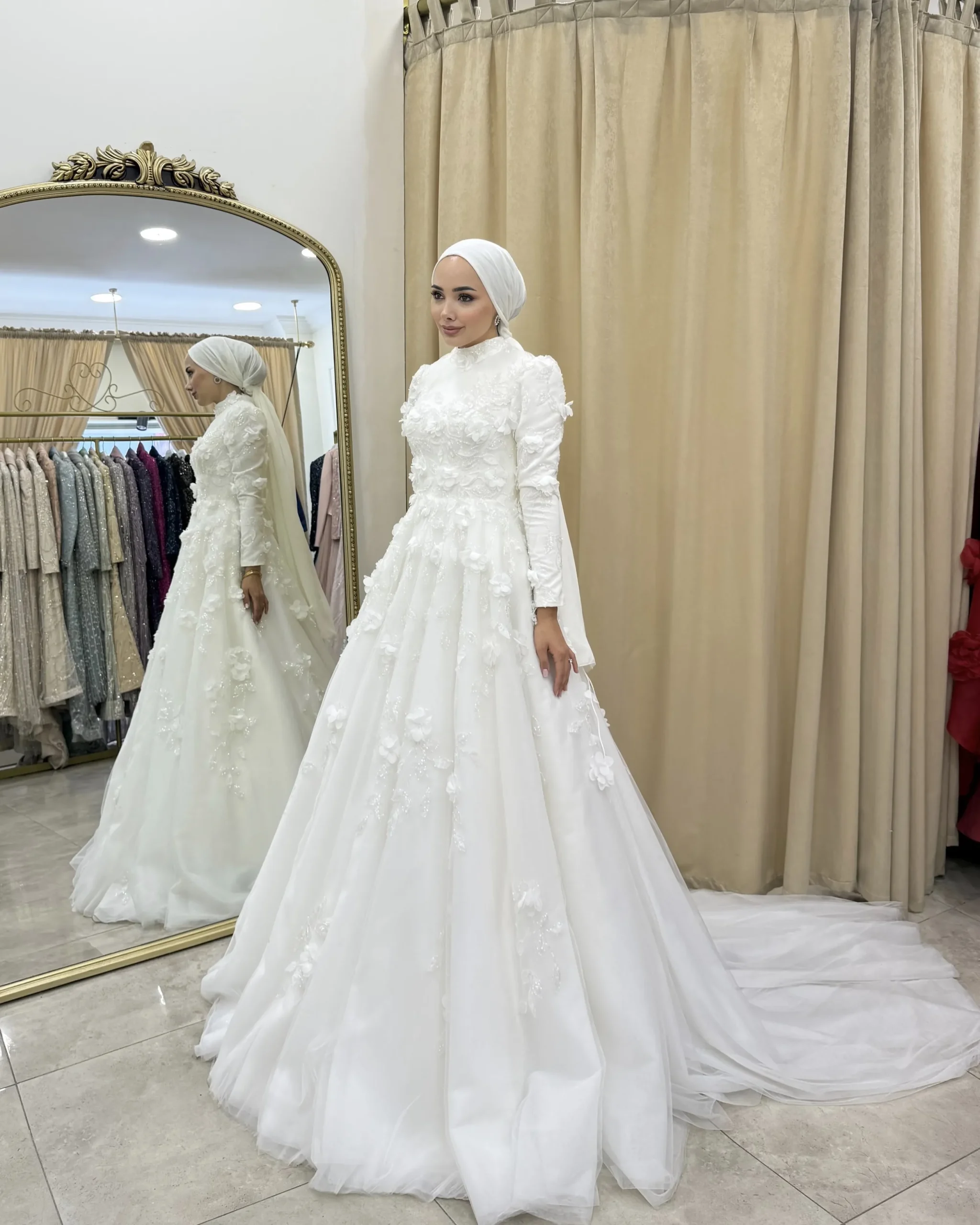 Doğallığın inceliğini ve çiçeklerin zarafetini yansıtan Blossam, romantik dokusuyla modern gelinliğin en zarif yorumlarından biridir. İnci beyazı tüller üzerine işlenmiş 3D çiçek detayları, her adımda zarif bir hareket yaratır. Yüksek yaka formu ve uzun kollu tasarımıyla sade ama etkileyici bir siluet sunar.