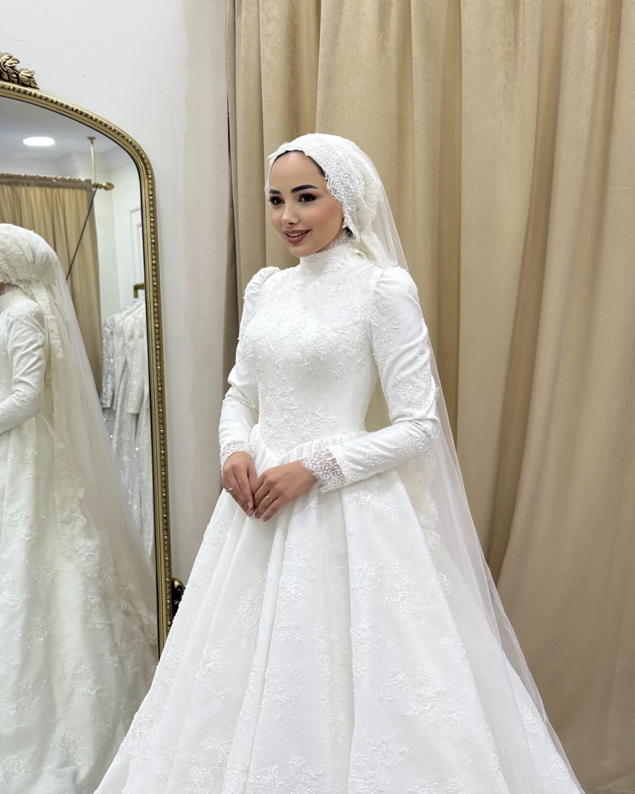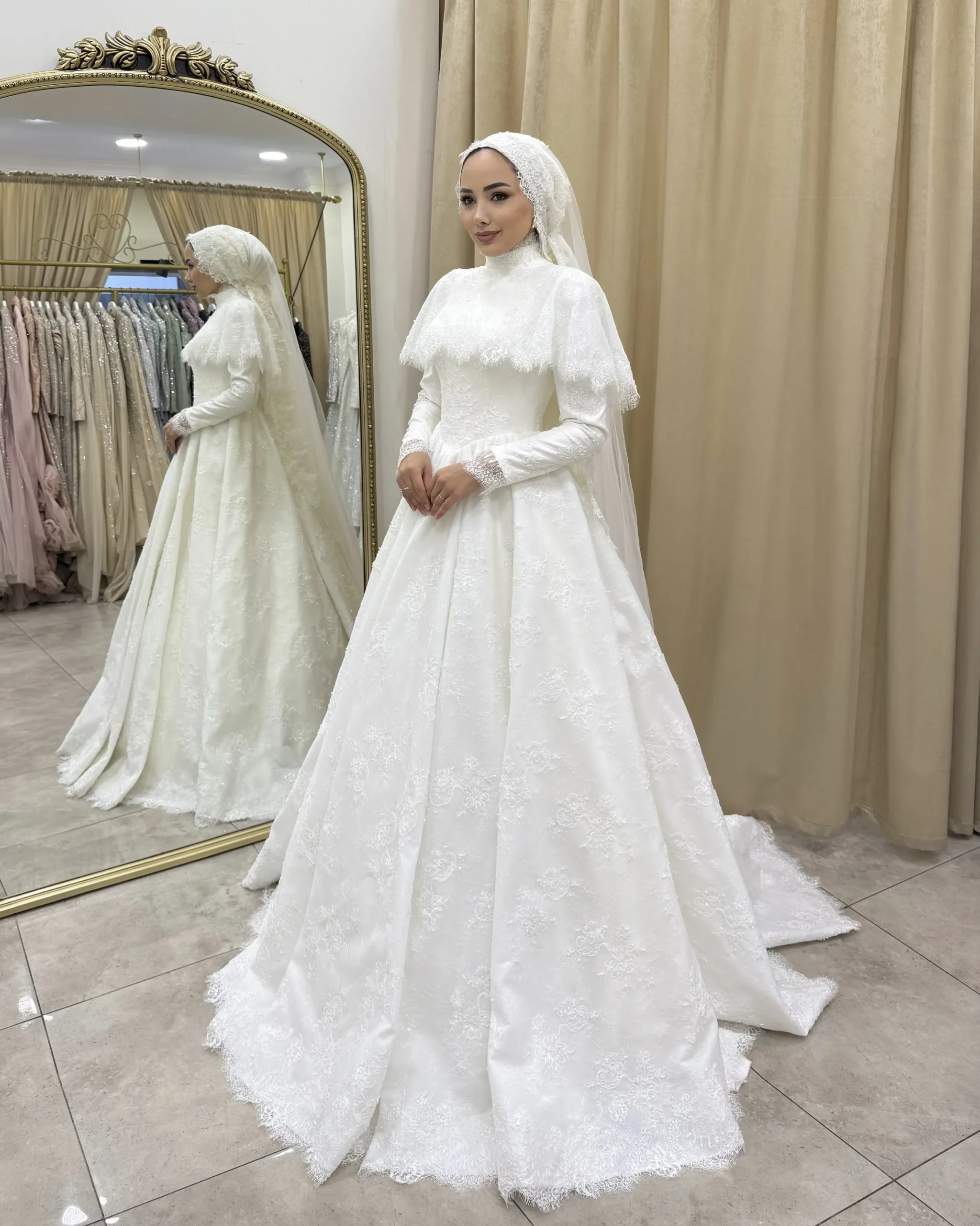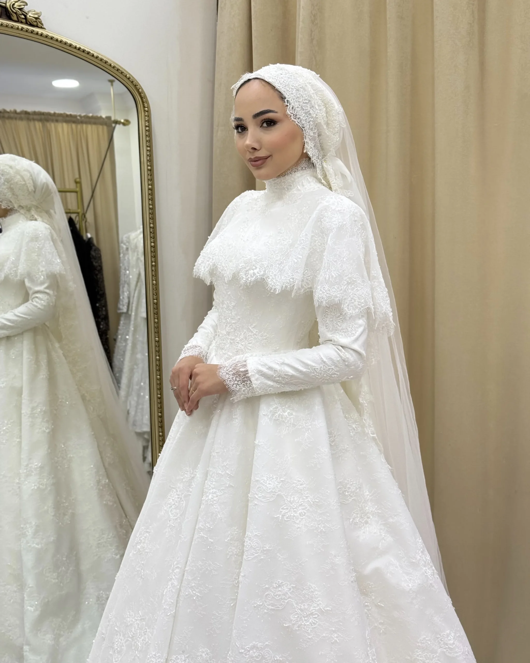 Dantel detayları ve zarif pelerin dokunuşuyla öne çıkan Marceline, en özel gününüzde sade ama etkileyici bir şıklık sunar. Romantik ve klasik gelinlik arayanlar için kusursuz bir seçimdir.